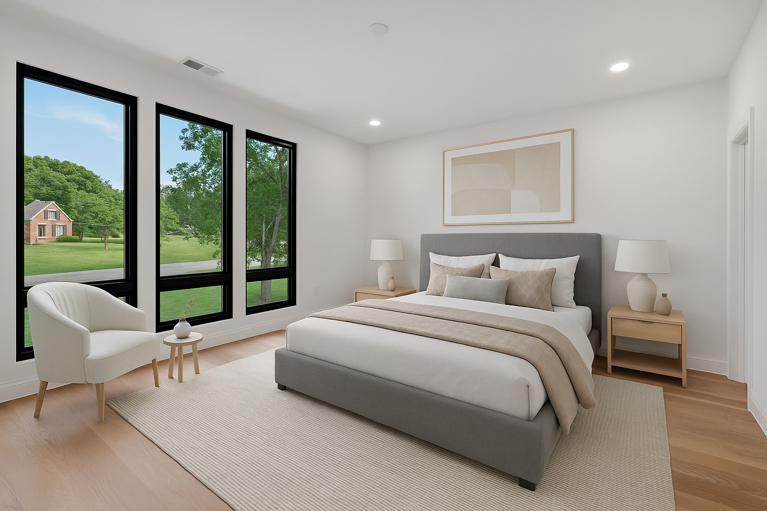 Brentwood Modern New Construction. 1 acre corner lot only two minutes to the I-65 exit. Includes pool, outdoor kitchen, landscaping, irrigation, privacy fence and backyard grading to taste. Five bedrooms, Five full baths, Two half baths plus elevated office, 2nd floor rec room with wet bar, plus 2nd floor theater / TV room and hidden kids' playroom off one of the bedrooms (must see, so cool). Private, main floor guest suite. Impressive, two-story tiled entry. Phenomenal owner suite with an expansive 21’x12’ closet and 25’x12’ primary bath. Main floor laundry off the primary closet as well as a 2nd floor laundry. Wolf and Sub Zero appliances including cabinet-paneled refrigerator, freezer and wine column. Linear, modern fireplace with quartz surround. Hidden pantry/skullery with additional appliances. Cabinets from Nashville Modern Cabinetry. Illuminated stair treads. The incredible location features a private neighborhood with only one way in and out and a walking trail to the Brentwood splash park and indoor sports complex as well as walking distance to the Brentwood YMCA and Brentwood Library. Half bath off the patio for easy access from the yard/pool. Massive covered patio with stone front exterior fireplace. Guest drive plus owners' drive that connect, see the site plan. Four garage spaces plus ample surface parking for large parties. Buyer can help design the final landscaping. Buyer optional items to be installed, please inquire for more information. A fenced front yard with gates is possible. A fully fenced backyard with privacy landscaping is optional. Inquire now for seller-paid interest rate buy down among other possible concessions.