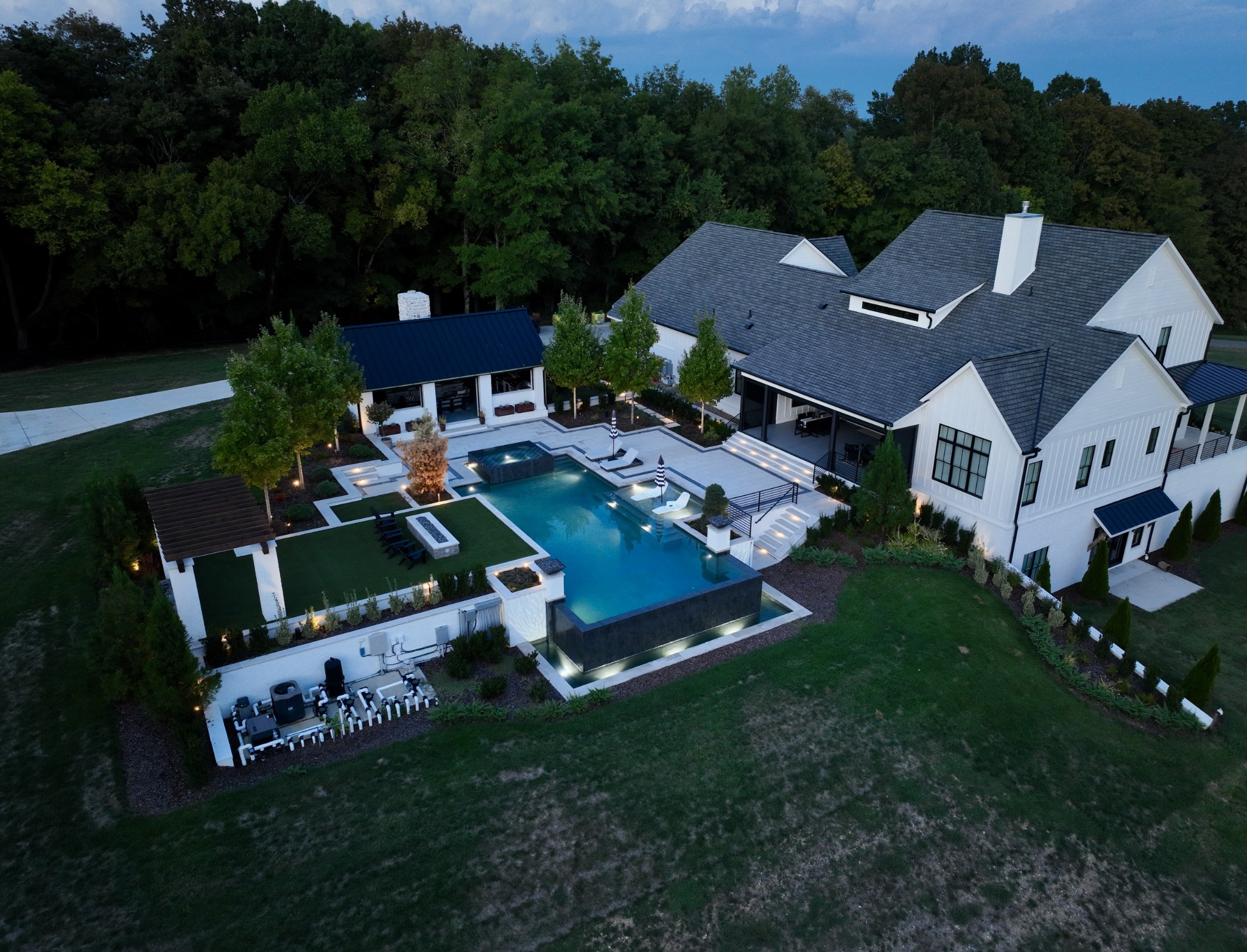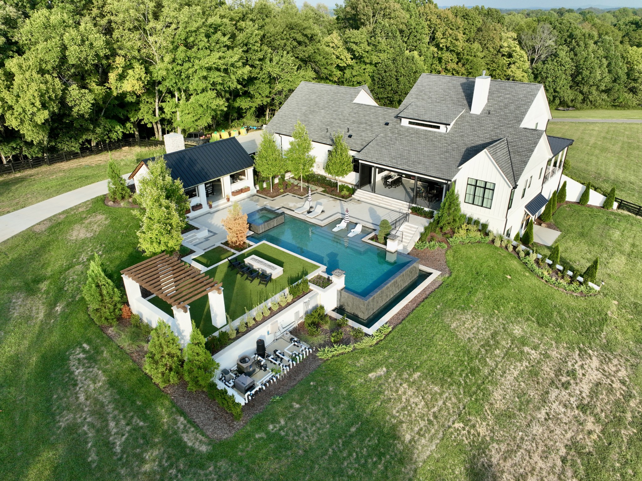 Ever wish you could give your family room to spread out, space for the kids to run barefoot, get dirty, and play outside like childhood’s meant to be, without giving up quick access to the city? This property makes that dream real...Tucked on 24 private acres, this modern farmhouse feels worlds away from the bustle, yet you’re just minutes to Franklin, Nashville and BNA. It’s the kind of place where you can sip coffee on the porch in peace, then still make it downtown in no time. Inside, the home is every bit as impressive as the land: 5 en suite bedrooms plus a powder room, a chef’s kitchen with scullery, and a main-floor primary suite designed like a private spa. Two laundry rooms and a secure safe room add ease and peace of mind. Step outside, and it’s like your own resort. Infinity pool, spa, fire bowls, fountains, and a pool house built for gathering with friends and family. The modern barn is ready for whatever your lifestyle calls for, whether that’s cars, animals, or turning it into the ultimate creative space.