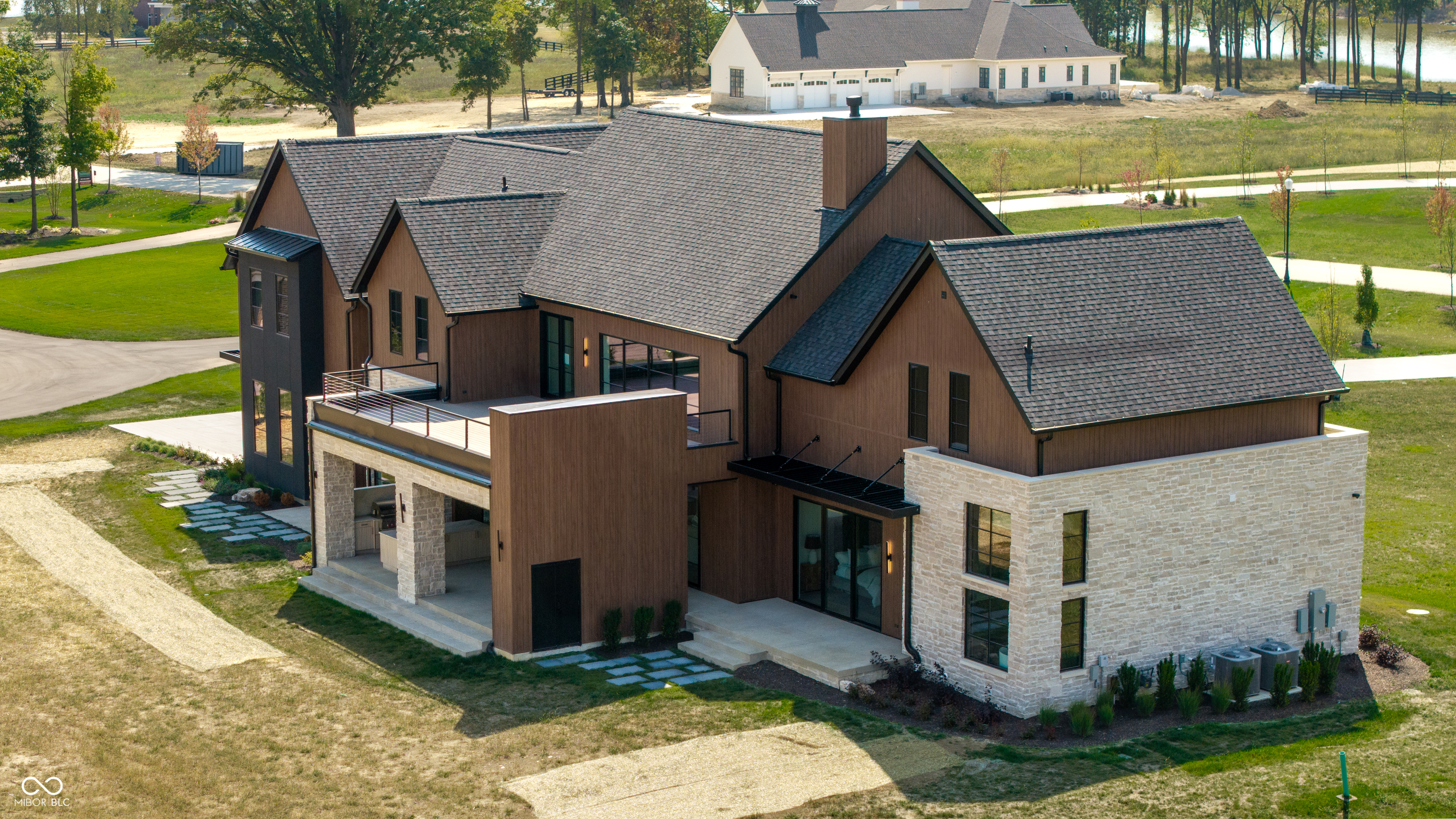 This custom home by Rise Builders is built with unique, high-quality finishes and attention to the finest detail. From the moment you enter, you will feel the impressive ambiance of the 22 foot tall, maintenance-free waterfall in the foyer. The floating stairs and cable rail with custom concrete treads going up to the catwalk overlook the great room and stunning rock fireplace, as well as the grand entryway. This modern kitchen is equipped with Wolf and Sub Zero appliances, and extends into a luxurious light-filled scullery kitchen. 10' high accordion glass doors open up into a dreamy outdoor living space. This extension of the home is tricked out with motorized screens, a fireplace, a built-in gas grill, and two outdoor heaters . The possibilities are endless for a finished 1273 square foot bonus room with 16 foot high ceilings. There is a 20'x32' rooftop for enjoying the view of the pond and the serenity of living in the country. An elevator allows easy access to all 3 floors, including an expansive lower level with even more intentional space to fit your lifestyle. Plenty of possibilities abound on this expansive 2 1/2 acre lot with mature trees in the back to add to the privacy. The sky is the limit. Bring your ideas and Rise Builders will make them come true! Pool is proposed but not included in the price, bring us your ideas for your dream back yard and we will make them come true. Call for details.